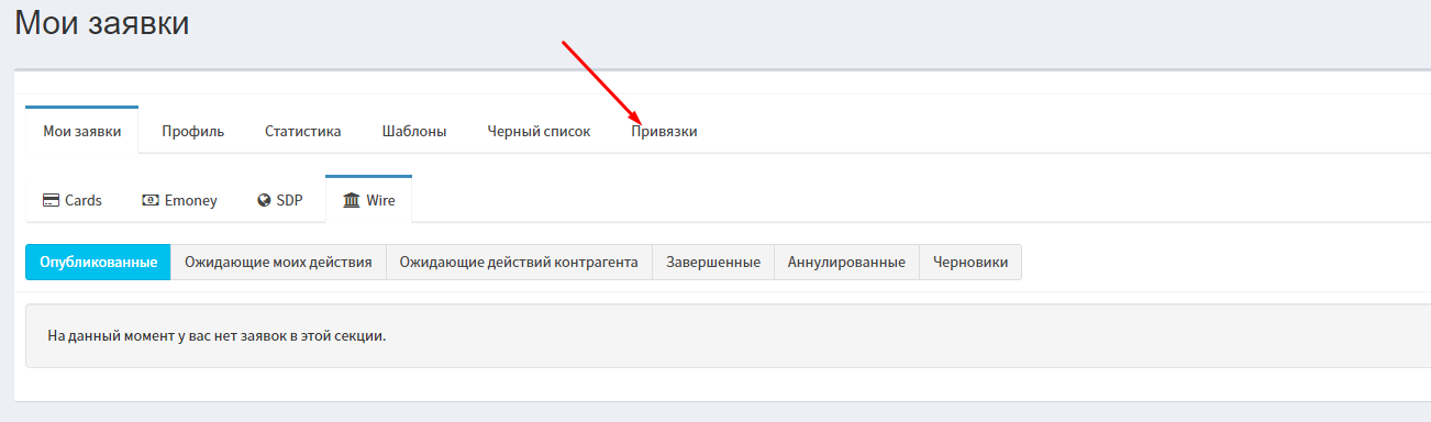 - Во вкладке на сервисе Exchanger потребуется перейти в раздел «Привязка», в котором отобразиться новый кошелек Юмани.